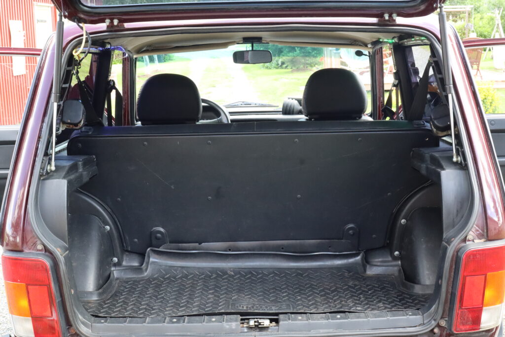 Puskureita on aika patinoinut ja niistä maali hilseilee mutta pieni hilseily tekee Nivasta vain katu-uskottavamman. Ratakisko-tyylisten puskureiden teho ei hilseilystä kuitenkaan ole yhtään kärsinyt, vaan sain takapuskurilla huoltoaseman bensapumpun aivan solmuun mutta puskuriin ei tullut jälkeäkään. Koitappa samaa länsiautolla, niin bensapumppuun ei tule jälkeä mutta joudut hankkimaan länsiautoon uuden puskurin ja oikomaan peltejä.