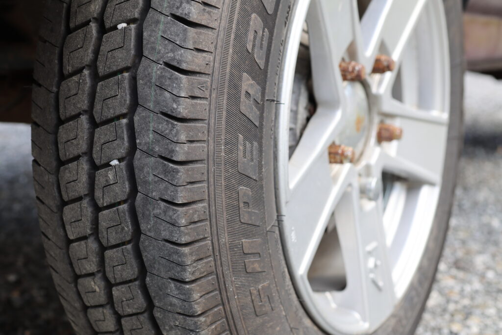 Nivan alla olevilla kesärenkailla on ajettu noin tuhat kilometriä ja talven nastarenkailla vaivaiset sata. Vanteissa on lukkopultit, sillä muuten vanteet olisivat Venäjänmaalla hävinneet jo ensimmäisenä yönä.