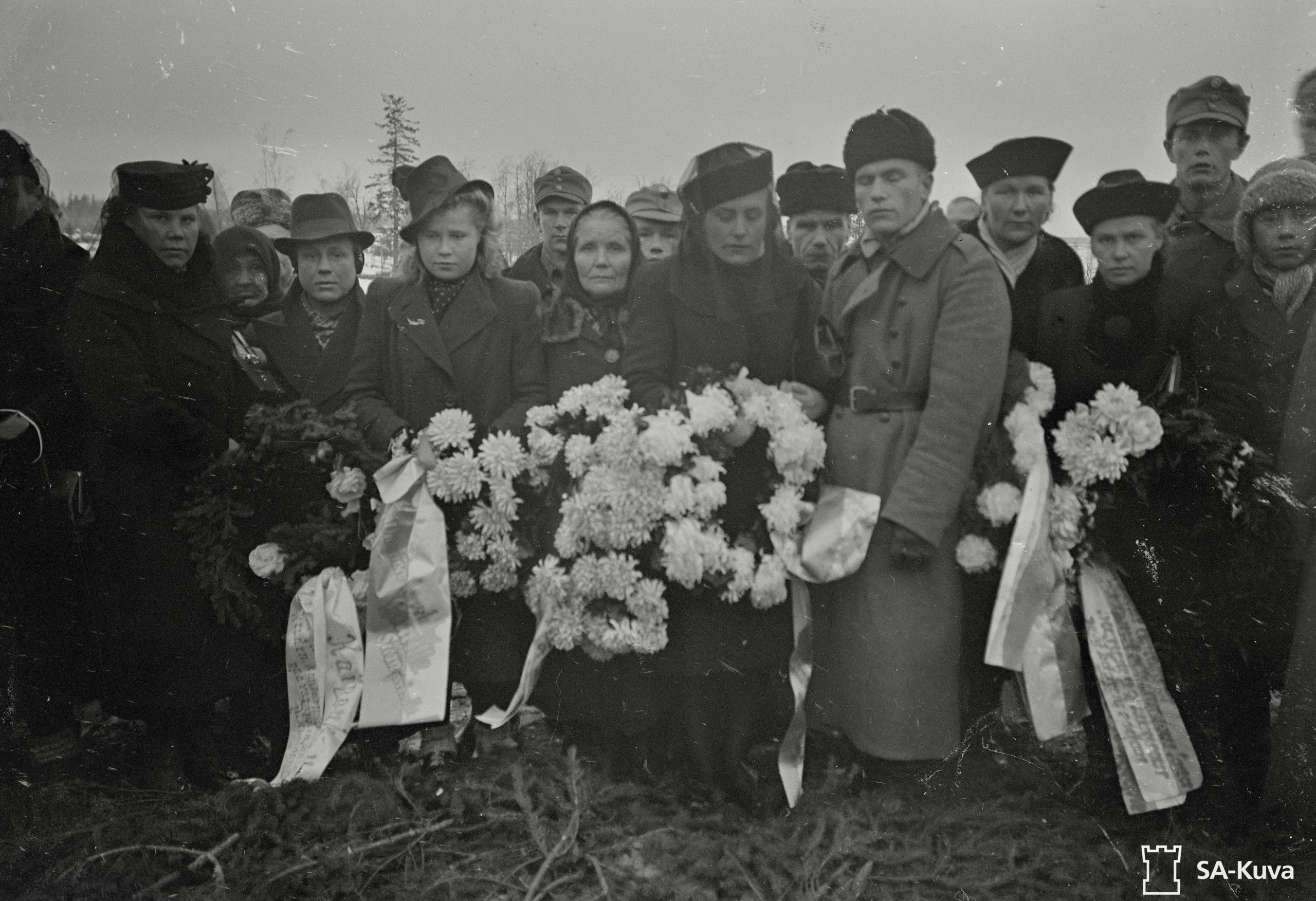 Ensimmäiset sankarihautajaiset Muolaassa, hävitetyn kirkon liepeillä. 1941-11-26
