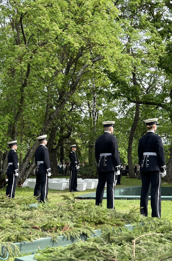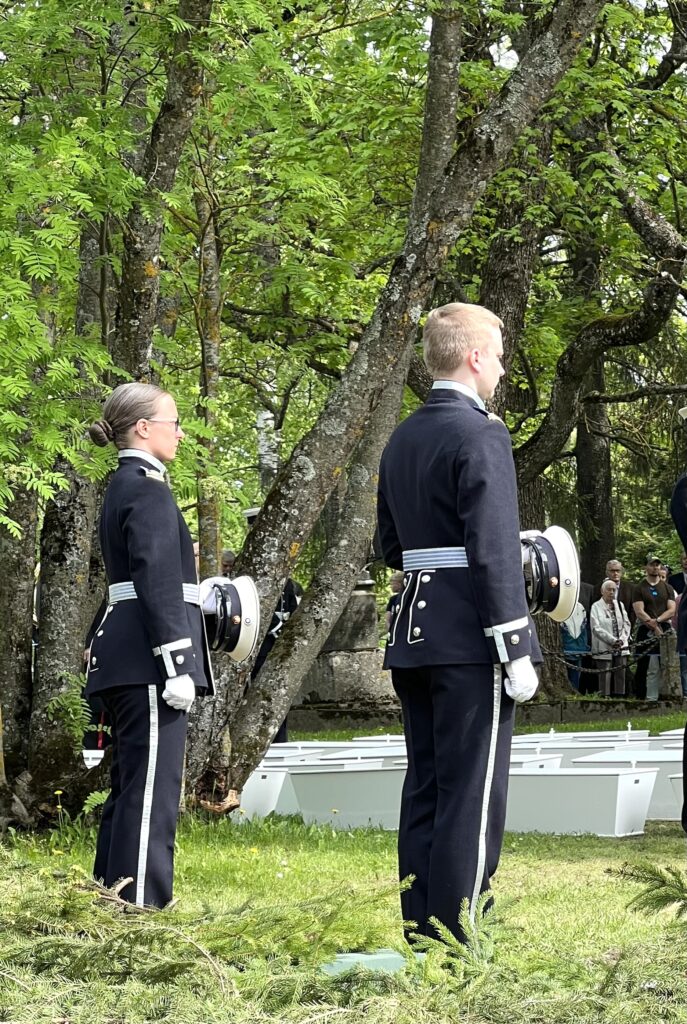 Sankarihautajaiset olivat vaikuttava tilaisuus. Oli hienoa nähdä, sekä kirkossa, että sankarihautausmaalla monisatapäinen ihmisjoukko kunnioittamassa näiden tunnistamattomien sankarivainajien muistoa ja saattamassa heitä viimeiselle matkalle. Olen lukenut sota-ajan sankarihautajaisista, joissa usein osa ihmisistä ei mahtunut sisälle kirkkoon, kun väkeä tuli paikalle niin paljon.