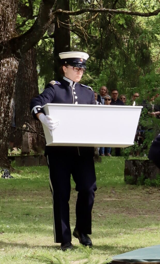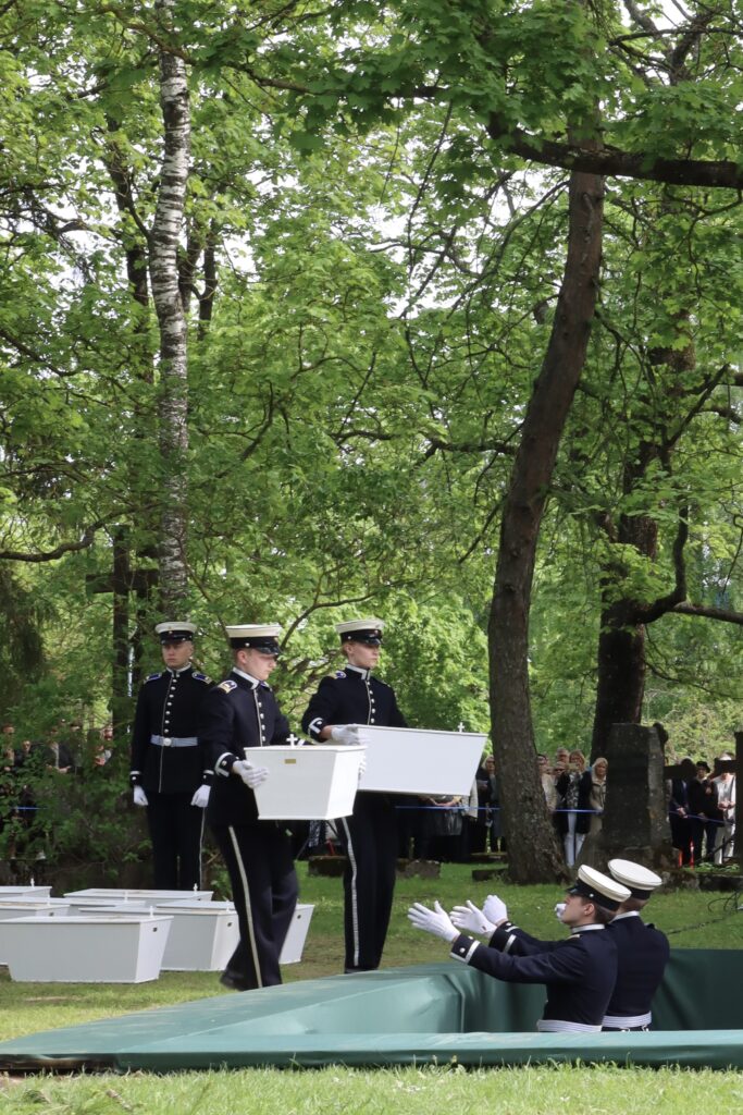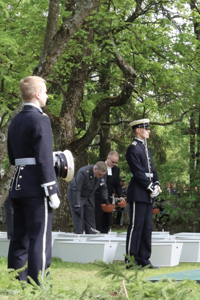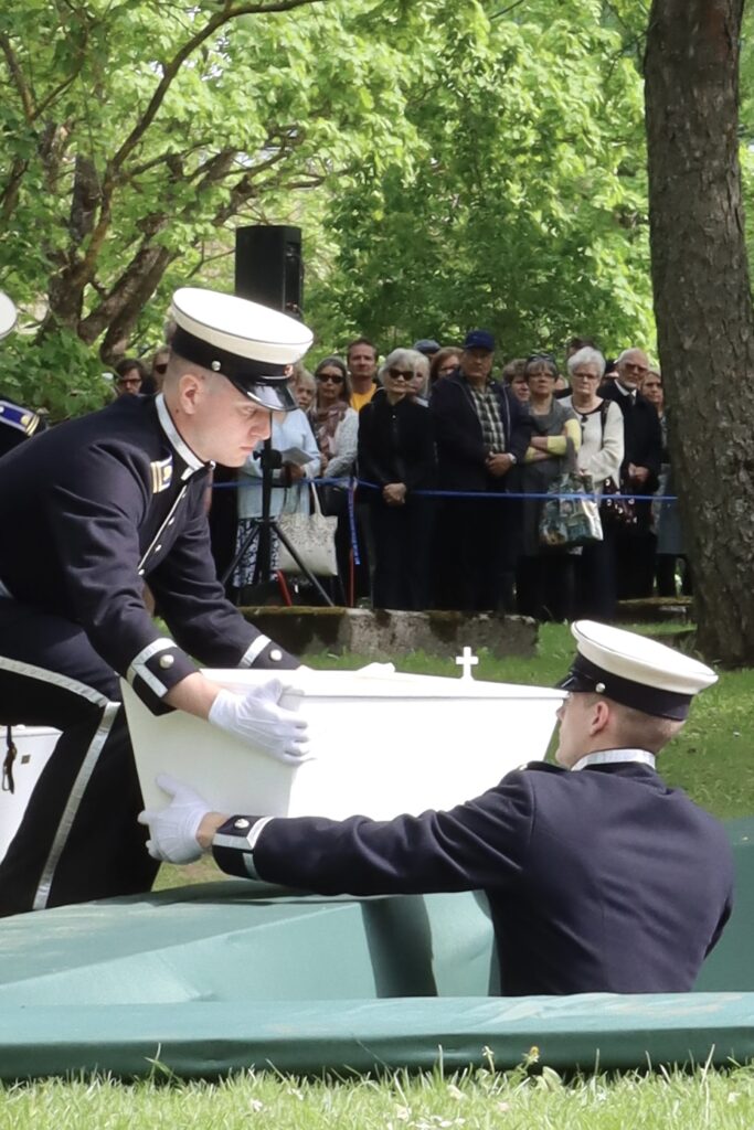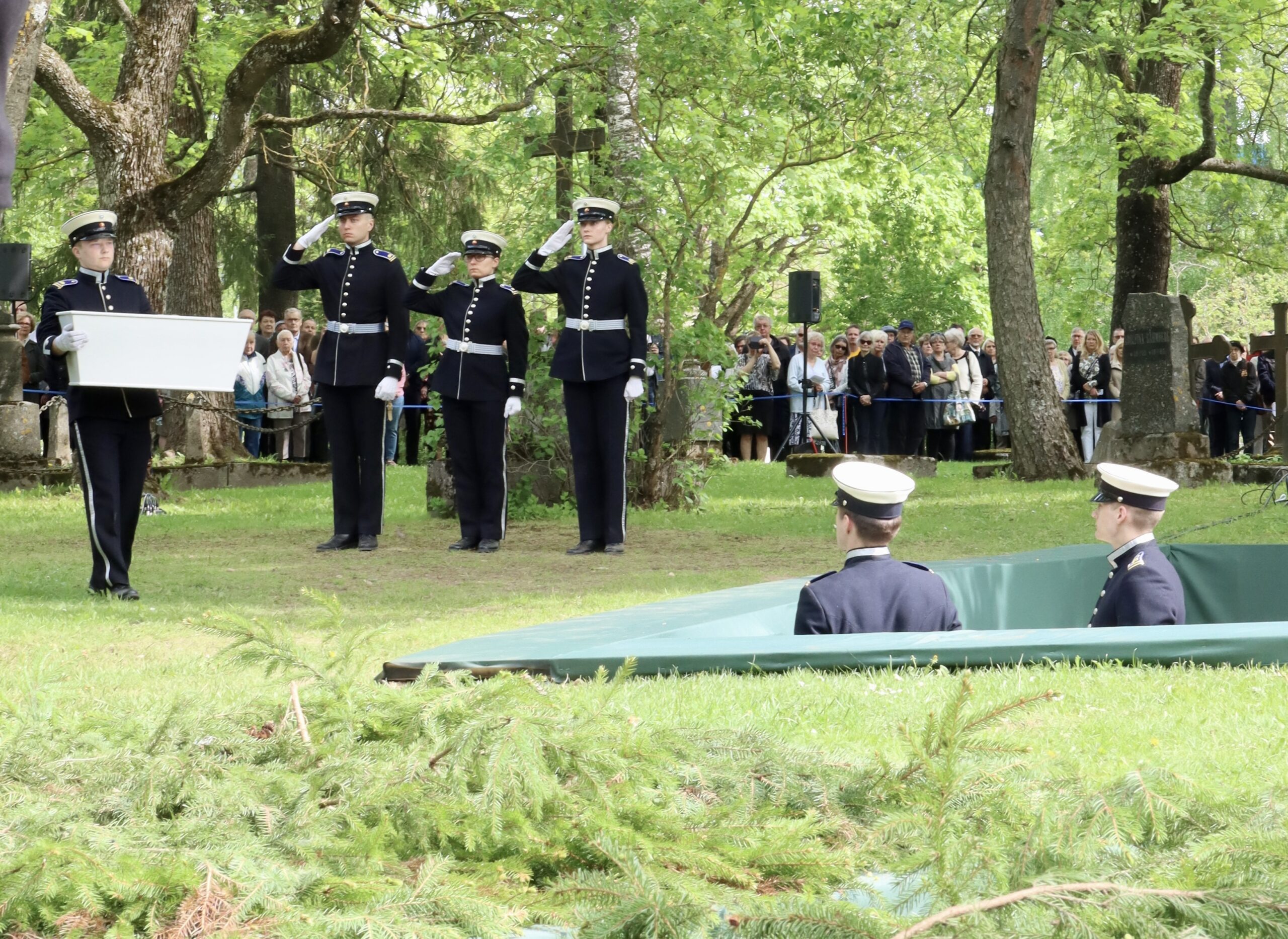Hienoa oli myös, että tilaisuuden kulku oli perinteinen kunnialaukauksia unohtamatta. Kadetit juhlauniformuissaan ja valkoisissa hanskoissaan kantamassa arkkuja soittokunnan soittaessa surumielistä sävelmää, tekivät tilaisuudesta juhlallisen arvokkaan.