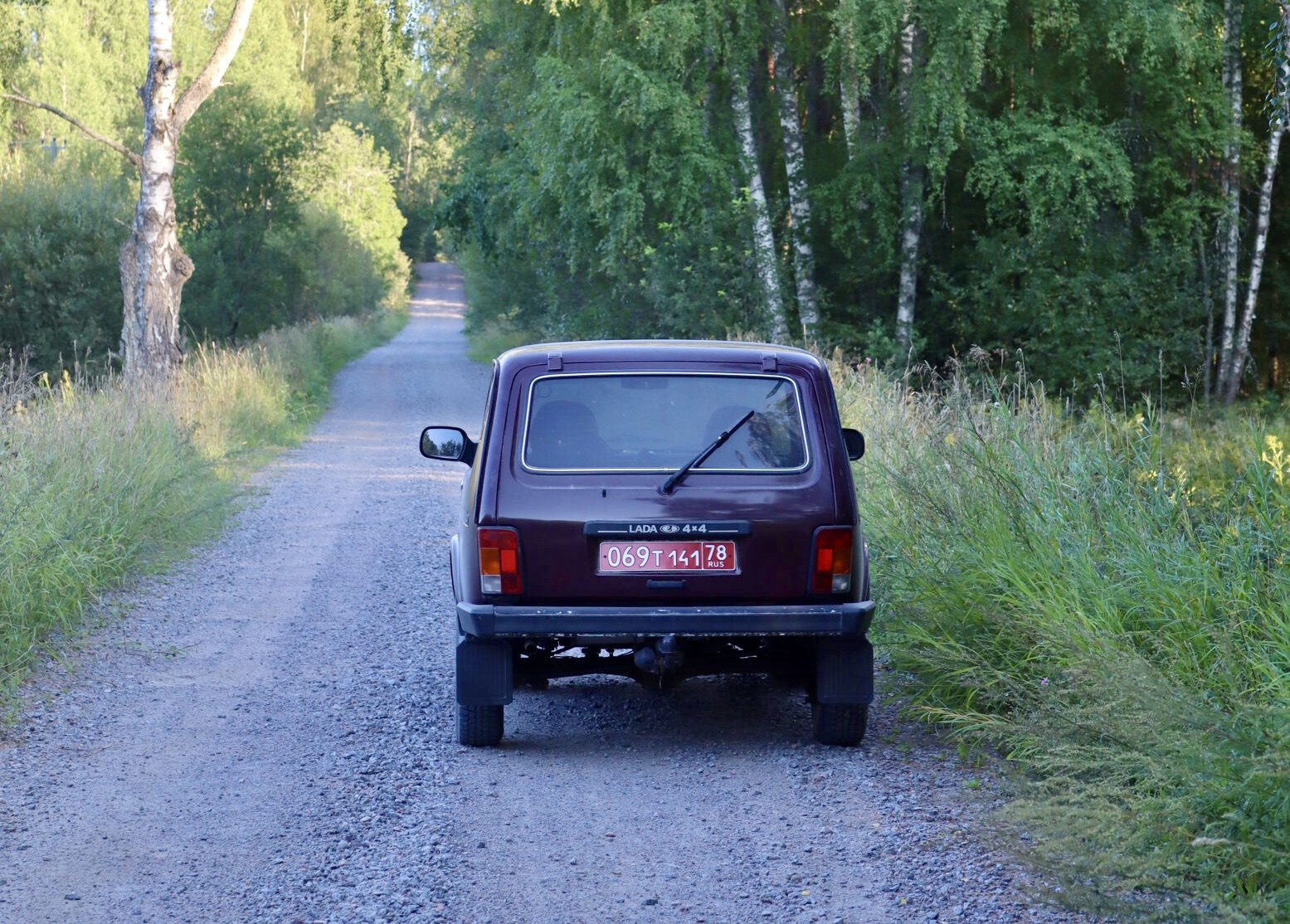 Lähdin ajelemaan kohti Koirinojaa. Ajoin Koirinojan läpi pientä hiekkatietä pitkin ja katselin taloja, joista ainakin puolet näytti olevan tyhjillään. Tie huononi ja välillä ajelin ojan puolella, kun tiestä hiekat olivat ilmeisesti kevään sateilla huuhtoutuneet pois ja jäljellä oli vain isoja kiviä. Olin ajellut vajaat neljä kilometriä, kun keskellä tiellä oli puutavaraa, ovia ja ikkunoita, jotka oli ilmeisesti toimitettu vieressä olevalle rakennustyömaalle. Tien toisella puolella oli aita ja toisella puolella tiukka metsä, jonne ei Nivalla päässyt ajamaan. En olisi halunnut kääntyä takaisin, niin jätin Nivan siihen puukuorman eteen parkkiin ja kävin katsomassa pääsisinkö jatkamaan matkaa lähistöllä olleen talon pihan läpi. Pihan läpi ei tie jatkunut enkä voinut kenenkään nurmikoilla mennä ajamaan, niin oli pakko antaa periksi, kääntää Niva ja ajaa takaisin Koirinojalle ja pidemmän reitin kautta Nietjärven taistelun muistomerkille.