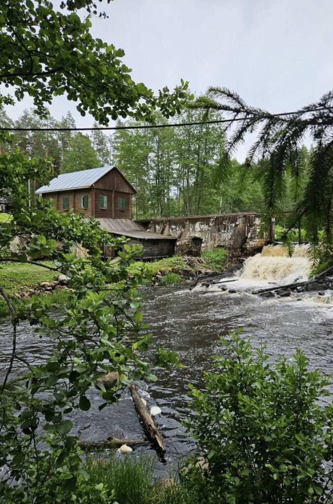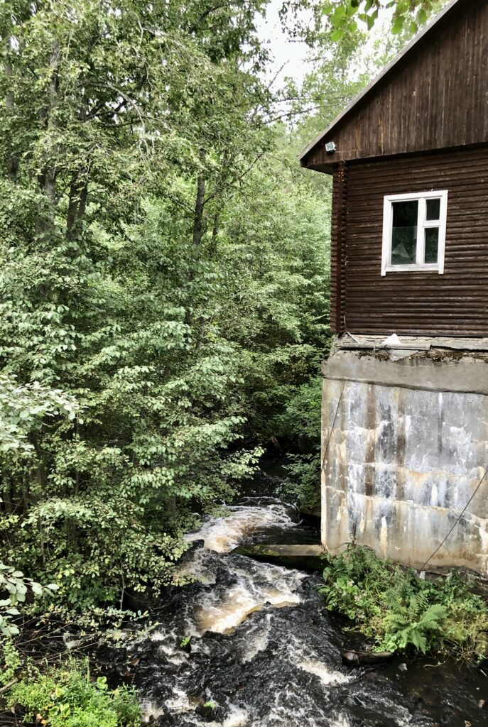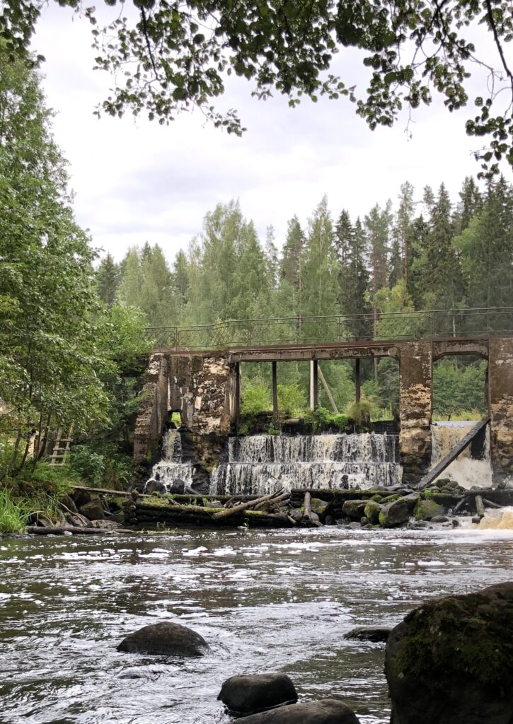 Saarniaistenkosken voimalan ympäristöön on venäläiset rakentaneet eri pituisia ulkoilureittejä, joiden varrella on tauko- ja grillauspaikkoja. Yllätyin autojen ja ihmisten määrästä, kun saavuimme perille. Koski kohisi ja vanhasta voimalaitoksesta on osia säilynyt tähän päivään saakka.