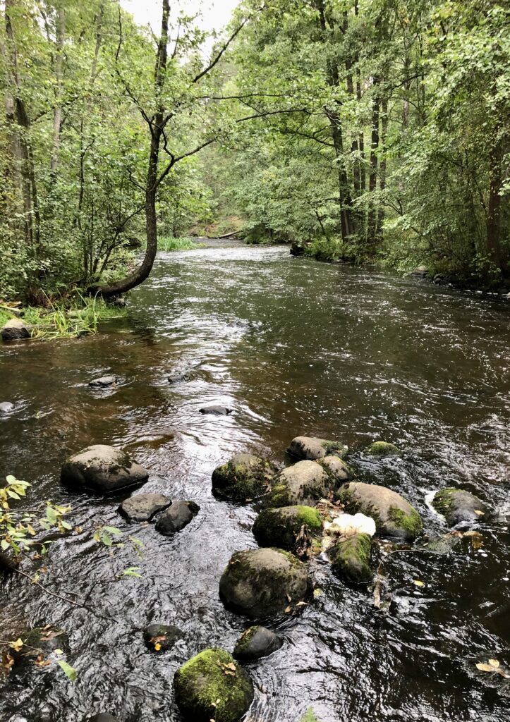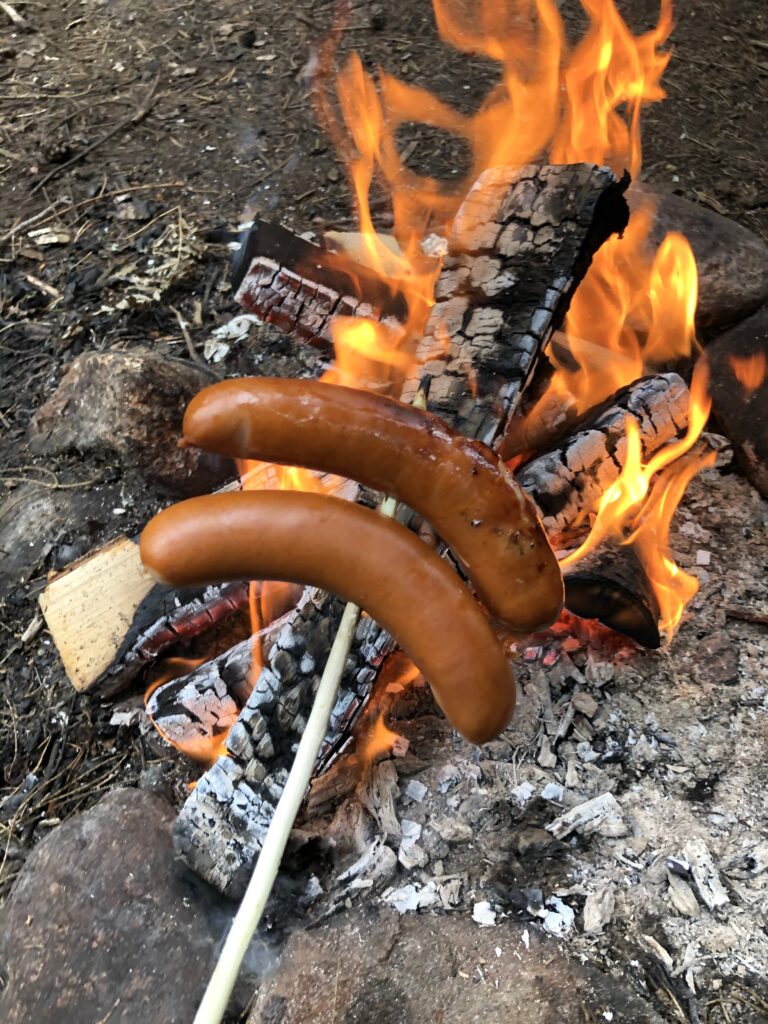 Valokuvasin koskea ja sitä mitä voimalaitoksesta on jäljellä, jonka jälkeen jatkoimme ulkoilureitillä kauniissa Saijanjoen rantamaisemissa nuotiopaikalle. Sytytin nuotion, jotta saimme grillattua makkaraa ja sen kylkeen minulla oli mukana salaatteja, leipää ja muuta evästä.